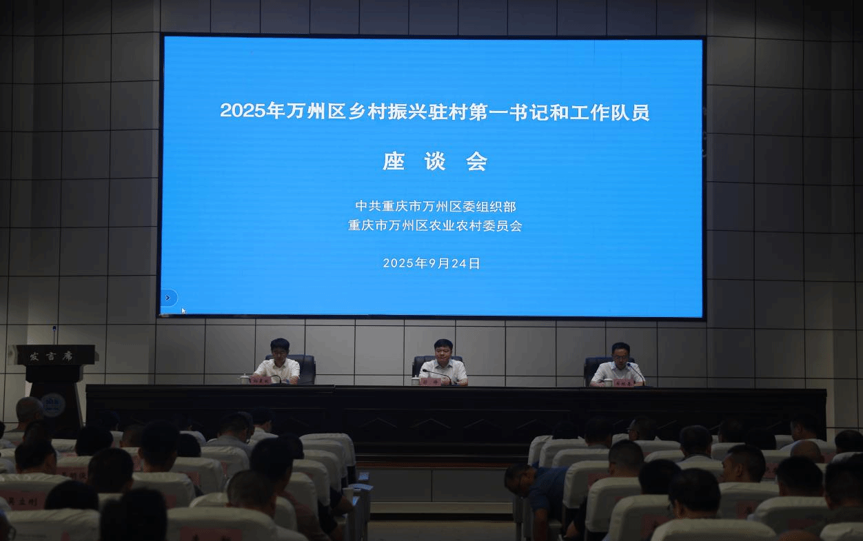 9月24日上午由我院承办的万州区2025年乡村振兴驻村第一书记和队员座谈会和万州区2025年乡村振兴驻村工作队培训第一课在我院顺利举行,万州区委常委、组织部部长彭锋、万州区委组织部副部长、区委直属机关工委书记牟林春、万州区委农业农村工作委员会委员、区农业农村委副主任向晨牧应邀出席座谈会。会前,学校党委书记谈建成,学校党委委员、副校长袁德梽陪同调研。