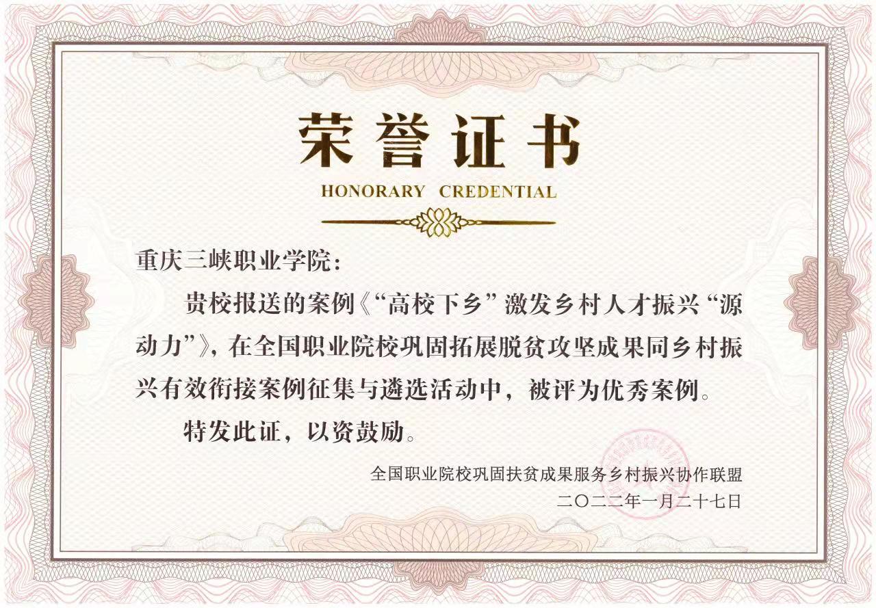 2021年12月至2022年1月上旬,全国职业院校巩固扶贫成果服务乡村振兴协作联盟(以下简称“联盟”)组织开展了职业院校巩固拓展脱贫攻坚成果同乡村振兴有效衔接优秀案例征集与遴选活动。米兰体育网页版高度重视、精心组织。 联盟组织专家从问题的普遍性、模式举措的可推广性、实践成效、示范辐射等方面对全国职业院校报送案例进行遴选,我院报送的《“高校下乡”激发乡村人才振兴“源动力”》被评为优秀案例。
