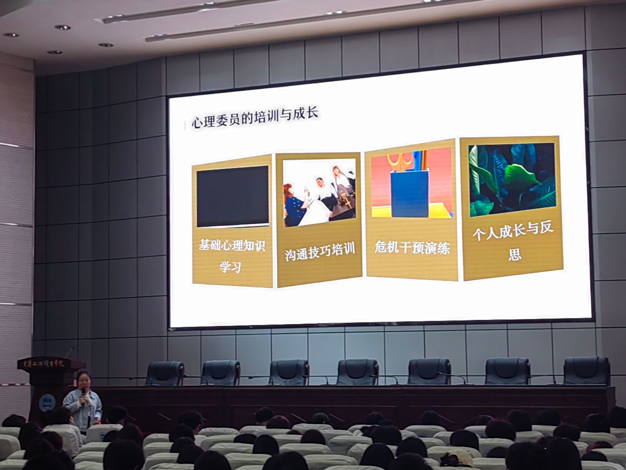 活动伊始,万州区卫健委爱国卫生科熊华科长为讲座致辞,强调心理健康对青年成长的重要意义。随后,王珊医生围绕“角色与职责”“心理健康的重要性”“常见心理问题”“沟通与应对”四大主题展开讲解,通过案例分析、情景模拟等形式,系统提升心理委员的危机识别与朋辈辅导能力。