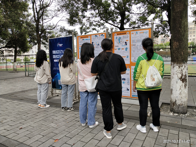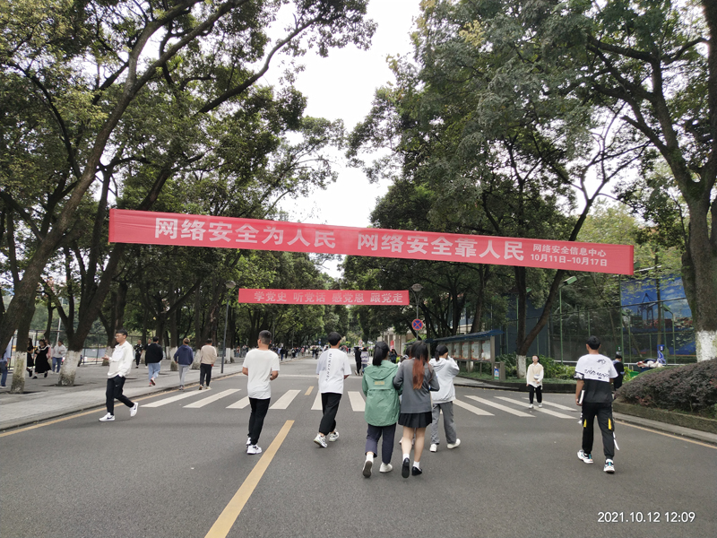 网络安全信息中心紧紧围绕“网络安全为人民,网络安全靠人民”的活动主题,在人流量大的米兰体育网页版樟树林、食堂等地方,采用悬挂横幅标语、海报展览、发放折页宣传资料、LED大屏展示等形式宣传活动主题,介绍国家网络安全宣传周情况,讲解常见的网络骗局及防范案例。