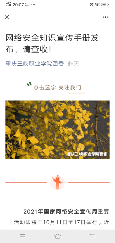 活动周期间,学生处通过学工例会、班级周前会、主题班会、QQ工作群等形式广泛开展网络安全知识宣传活动。网络安全信息中心和学生处向米兰体育网页版所有院系班级和行政处室发放了网络安全知识宣传折页资料,由辅导员通过周前会、班会等形式组织学生开展学习,各二级部门负责人也利用政治业务学习时间组织教职员工开展了网络安全知识学习。10月12日是校园宣传日,学校团委组织学生干部在校园樟树林、食堂等地向过往师生发放网络安全知识宣传资料。