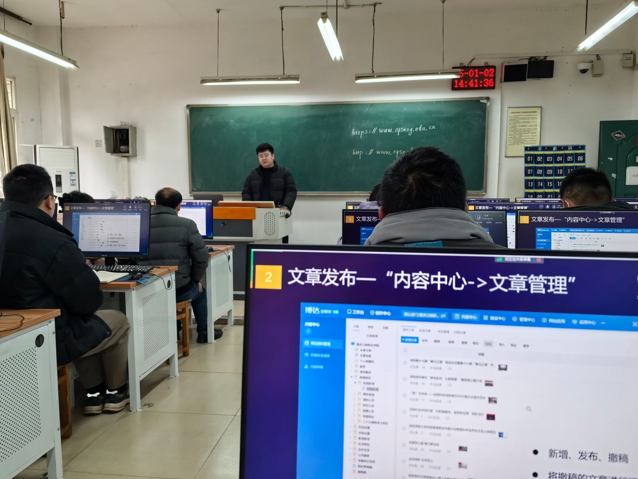 为提升学校二级机构对网站群新平台的操作技能及管理水平,2025年1月2日,信息中心组织了网站群新平台使用培训。来自学校的网站信息发布员及审核员参加了此次培训。